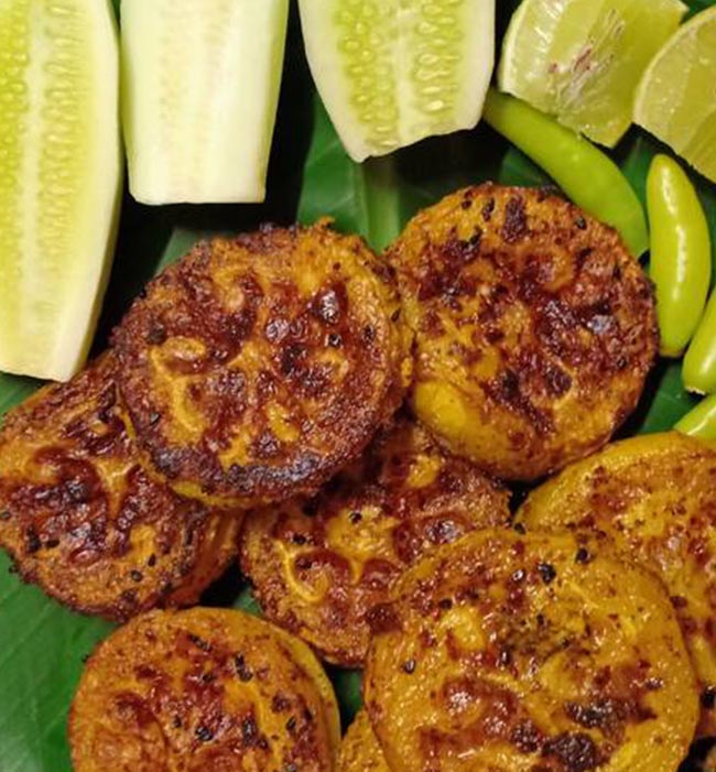 No Bengali menu serves a dal alone. It must be accompanied by a bhaja or fries. The most common being alu bhaja or fried potatoes (the cuts of which differs from one household to another - julienne to round), begun bhaja or fried brinjals to the seasonal potol bhaja and so many more (bengalis fry almost everything that is edible!). But one of the uncommon ones we share with you today – chalkumror pur bhaja (the sharpness of mustard, creaminess of coconut with the crispiness of rice flour creates an unparallel symphony that is Stuffed Ash Gourd Fries). Pair it with Appayan Husking Rice for an authentic Bengali dining experience.
